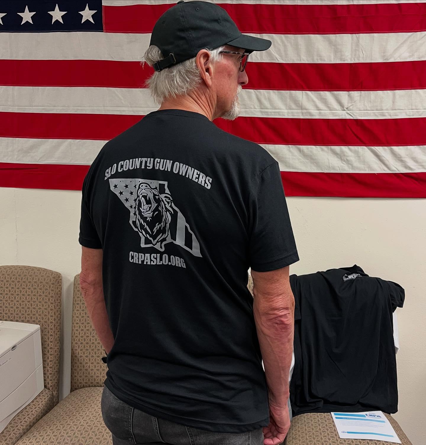 SLO County CRPA shirts in white or black are available at Uncle Ed’s Outfitters. 8681 El Camino Real Atascadero 805-461-5777